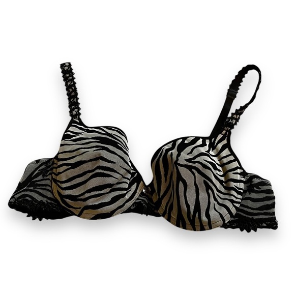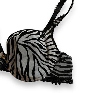 Chantelle Underwire Bra Zebra Print Mesh Black White Made in France Size 36B