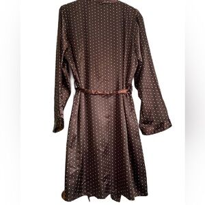 Chanteuse Intimate Brown with Turquoise Dots Wrap Robe with front tie, size: XL