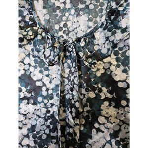 Top- v neck with a decorative tie, capped sleeve, armpit to armpit is 20.5 inches and the length is 24 inches.