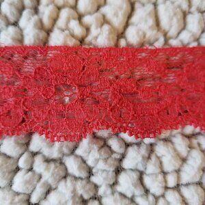Chantilly Lace Trim - 1" x 9 yards - Red Floral. Scalloped on one side and has a straight edge on the other. This Vintage lace has a soft. Seems like a True Red. That is subject to interpretation so no guarantees you will see the color the same.