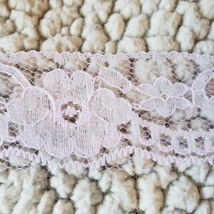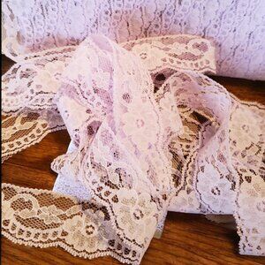 Chantilly Lace Trim - 1 1/4" x 12 yards - Pale Lavender Scalloped on one side and has a seam edge on the other. This Vintage lace has a stiffer feel.
