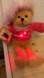 Adorable plush bear wearing a red sweater and a fluffy pink hat. Perfect for gifting or decoration.