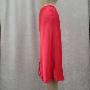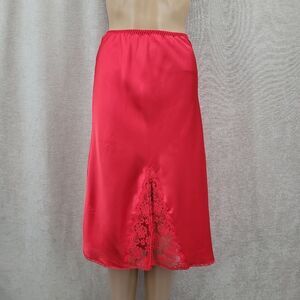 Chantilly Maidenform Vintage Red Satin Midi Knee Length Slip Skirt with Lace