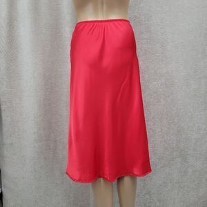 Red knee length satin slip skirt