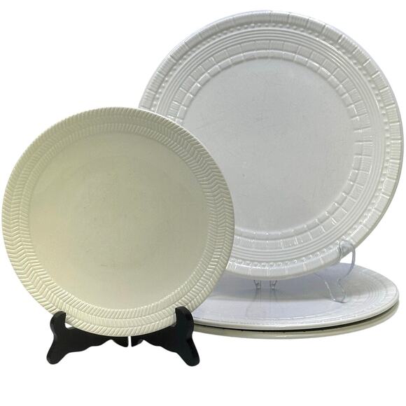 These plates are all crafted from durable stoneware and are in good condition with some signs of wear consistent with age-see photos to determine/verify details and condition prior to purchasing. The subtle embossed design adds a casual touch of sophistication to any table setting. Great replacement pieces for your Chantilly White dinnerware collection. # 5627