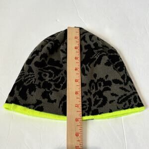 Chaos Super Soft Beanie Black Floral Pattern on Gray Trimmed in Neon Green