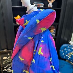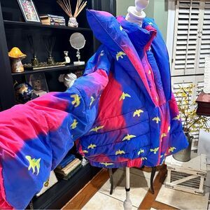 Chaouiche Blue and Pink Bird Design Puffer Jacket