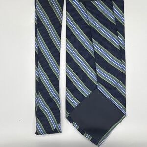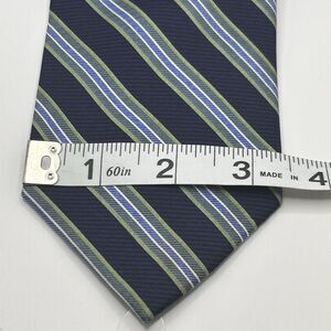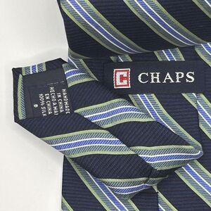 Chaps 100% Silk Men’s Neck Tie Hand Made Navy, Green White Stripes 58X3.5