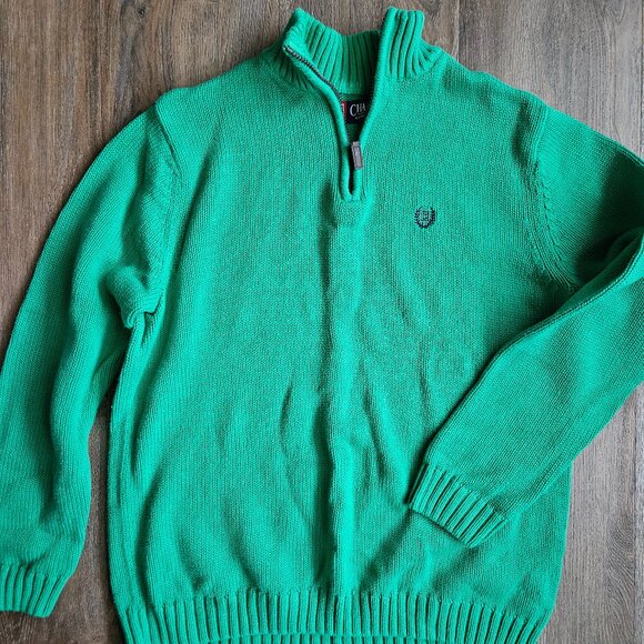 Chaps 100% cotton green men's quarter zip knit sweater size medium