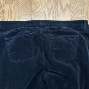 These Chaps 24W Black Straight Leg Velvet Pants are perfect for the holiday season or work wear. Made from corduroy fabric, they feature a zipper fly closure, button accents, and pockets for added functionality. The straight leg style and flat front design give a preppy and sophisticated look, ideal for casual occasions during the fall, winter, and spring seasons. Easy to care for with machine washable instructions, these pants offer comfort and style for any wardrobe.