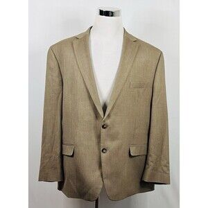 Chaps 50R Sport Coat Beige Two Button Floral Lining Vented Poly Rayon Blend