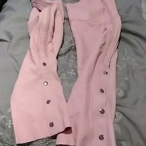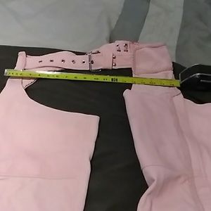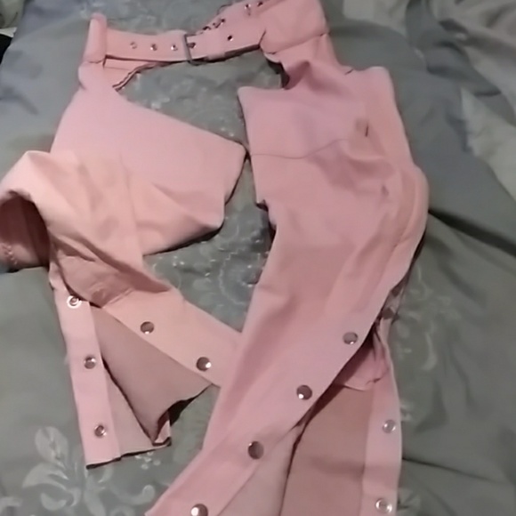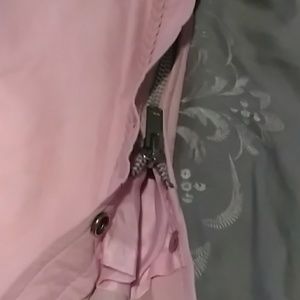 Pink button bottem- zipper on side-effects braid look/border and tie-up in back.