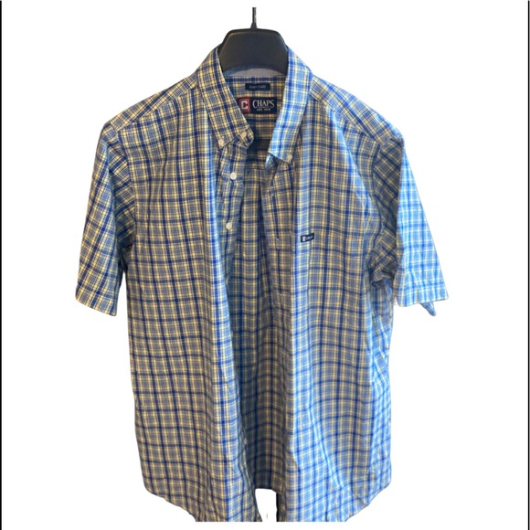Chaps easy care button down light weight blue and yellow shirt 👕