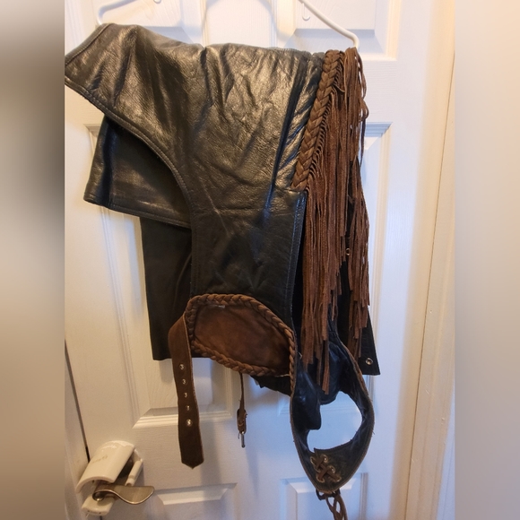 @owenbourassa the waist measures 42 to the first belt loop the inseam is 3w howe ee chaps are worn below crotch. the outside seam from the top of belt to the bottom of leg is 42.