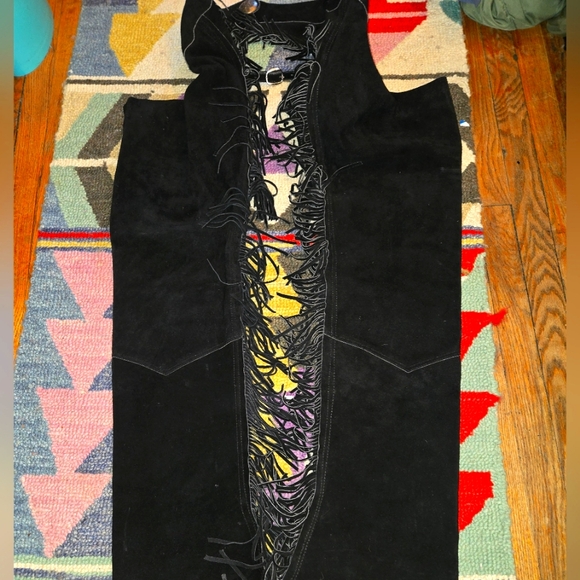 Tough 1 Black Suede Leather Chaps Fringe Full Large Zip Western