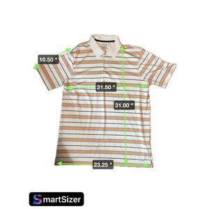 This is a Chaps 78 Stay‑Dry performance polo, built for comfort and function. The lightweight, moisture-wicking polyester fabric keeps you cool during any round. The classic striped pattern in soft blue and gold on a white base adds vibrance, while the Stay‑Dry tech ensures a quick-dry fit ideal for outdoor play. Circa-Likely circa mid-2010s,