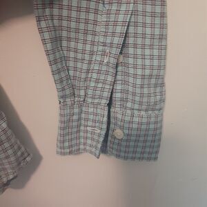 This blue plaid Chaps shirt is a classic addition to any preppy wardrobe. The long sleeves and collared neckline with button-down collar style make it perfect for any occasion. Made of 100% cotton with easy care features, this shirt is comfortable and low maintenance.