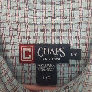 Chaps Adult Mens L Blue Plaid Long Sleeve Button Up Shirt 100% Cotton
