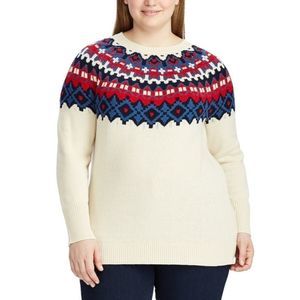 NWT: Look amazing and stay warm this winter wearing this Chaps Andrea fairisle sweater. Colors: Off White, Navy Blue, Red, and Royal Blue.
