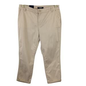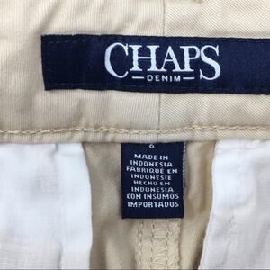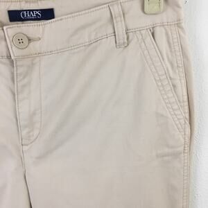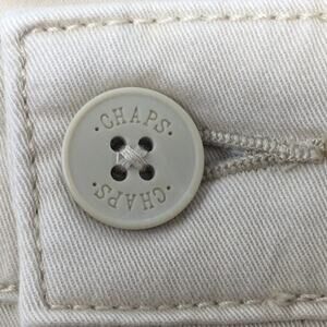 Chaps Ankle Pants. Size 6. Cream in color. 4 pockets (back pockets have button closure). Stretch (98% cotton & 2% Elastane). Front zipper with waistband button closure. Cuffs can be turned up or worn straight. New With Tags.
