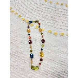 Chaps Beaded Colorful Gemstone Necklace Gold Tone Chain Fashion Jewelry