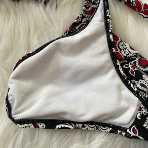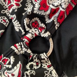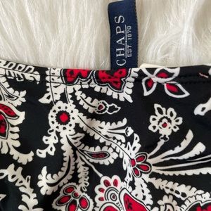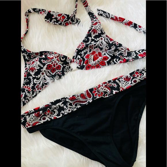 Chaps Bikini top size 10 bottom 14 beautiful design lined bra .two pieces black with red floral design . top ties
