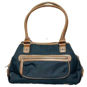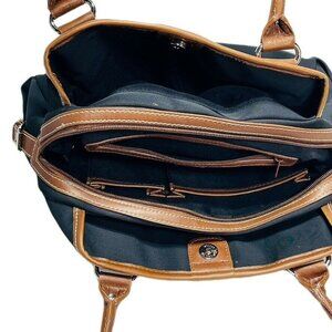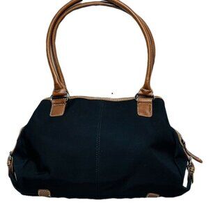 Chaps Black & Brown Canvas & Faux Leather Shoulder Handbag With Multiple Zipper