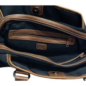 A versatile handbag featuring a combination of durable canvas and faux leather, ideal for everyday use. Its multiple compartments and pockets offer ample storage for essentials, ensuring organization and easy access. The sturdy handles provide comfortable carrying, while the sleek design suits various occasions and outfits.