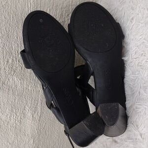 Chaps Black Faux Leather Almond Open Toe High Blocked Heel Slingback Sandal