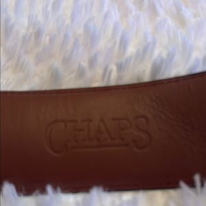 The Chaps Black Leather Belt is a refined accessory that combines classic style with modern flair. Crafted from smooth leather, it features a sleek design that complements any outfit. The standout iridescent metal buckle adds a unique touch, making it a versatile choice for both casual and formal occasions.