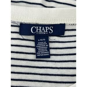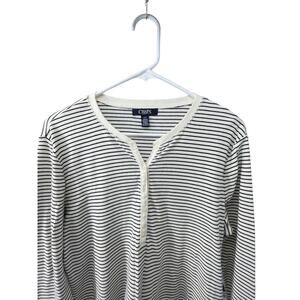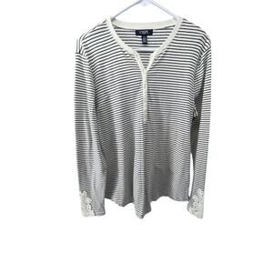Chaps Black & White Striped Lace Trim Henley Blouse Women's Size Large Excellent condition