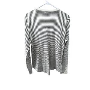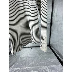 Chaps Black & White Striped Lace Trim Henley Blouse Women's Size Large