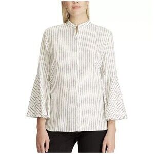 Chaps Black White Striped Linen Blend Bell Sleeve Button Up Blouse Top Plus XXL
