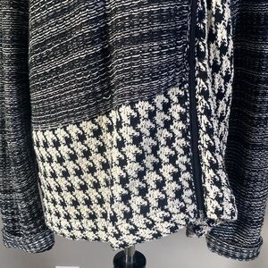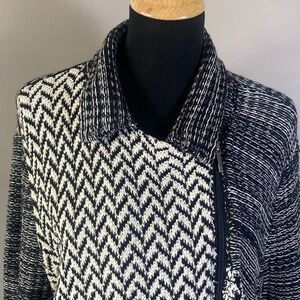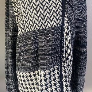 Chaps Black White Sweater Jacket Houndstooth Chevron Striped Mixed Pattern NWOT