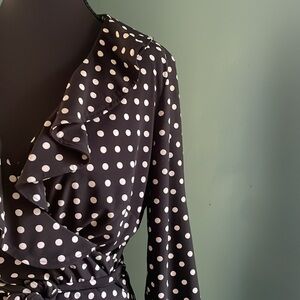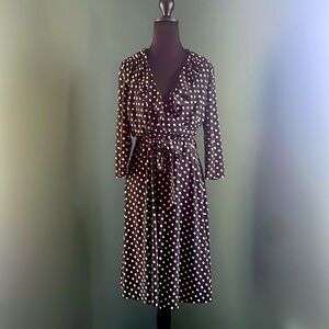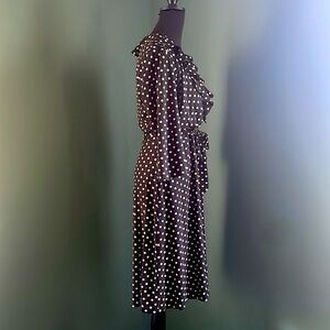 Elegant black dress featuring classic white dots. Ideal for versatile styling.
