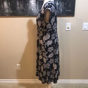 Chaps. Black/White Floral Flare V Neck MIDI Sleeveless Dress-Size L