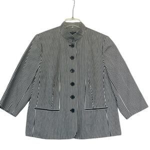 Chaps Blazer Jacket Black White Stripe Cotton Nautical Career Womens Plus 18W