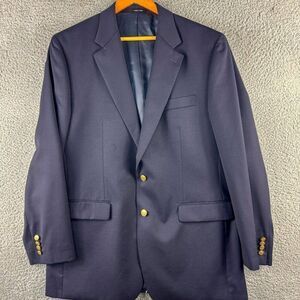 Chaps Blazer Men 44L Blue Wool Suit Jacket Business Casual Wedding Gold Buttons