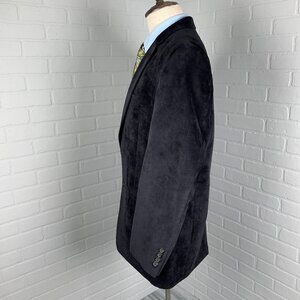 Chaps Blazer Men 44R Black Corduroy Classic Retro Academia Jacket Stretch Poly