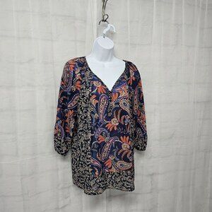 Chaps Blouse Blue Paisley Boho Cottage Peasant Casual Festival PM