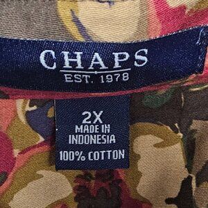 Chaps Blouse Button Up Brown Pink Floral Boho Cottagecore Preppy 3X