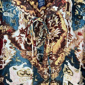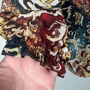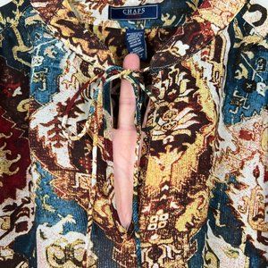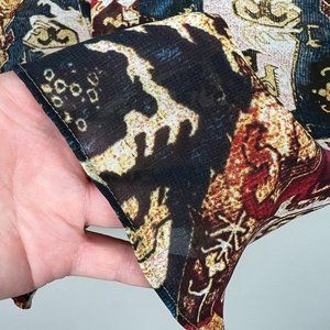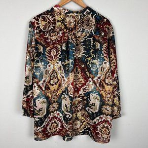 Chaps Blouse Top 3X Multicolor Printed Sheer Balloon Sleeve V-Neck Womens Plus