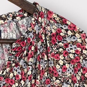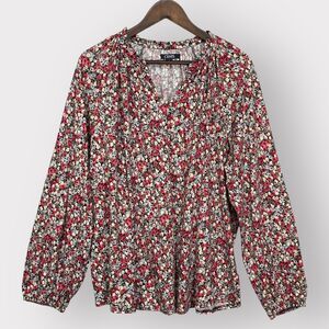Chaps Blouse Women XXL Red Floral Long Sleeve Stretch Curved Hem B25
