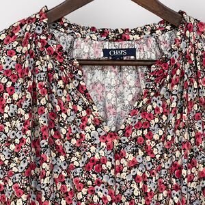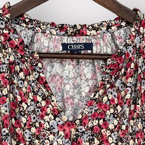 Chaps Blouse Women XXL Red Floral Long Sleeve Stretch Curved Hem