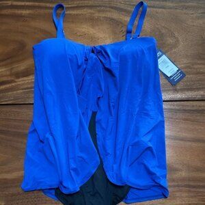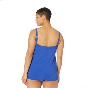 Chaps Blue Draped Flyaway Plus Size Swimsuit 16W