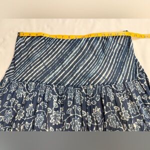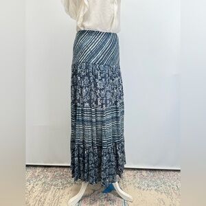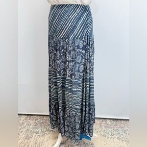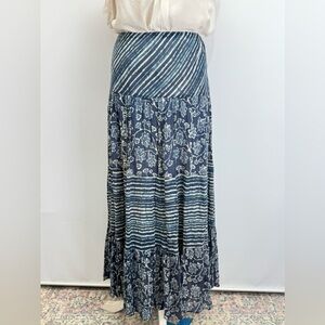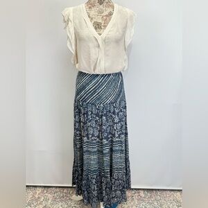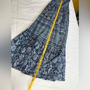 100% cotton! So comfortable and great quality. Women's navy blue and cream floral and stripe cotton gauze layered maxi skirt from CHAPS, size L.