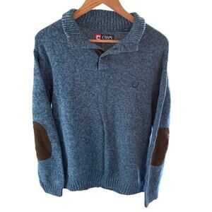 Chaps Blue Mens Cotton Pullover Sweater L Elbow Patch Preppy Classic Y2K Casual