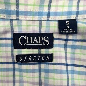 Chaps Blue Plaid Stretch Button Up Long Sleeve Shirt Size Small (8) Boy's
