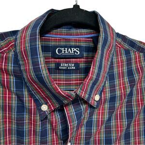 Chaps Blue Red Green Plaid Long Sleeve Button Down Casual Shirt Western Country