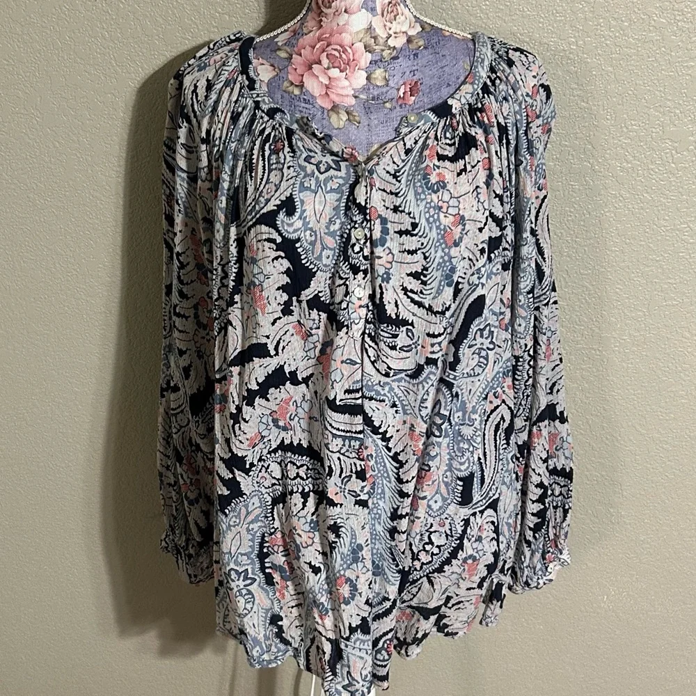 Chaps Blue Ruffled Buttoned Blouse